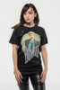 An official licensed David Bowie Unisex T-Shirt featuring the 'Vintage '83' design motif. This high quality T-Shirt is available in a black colourway. Eye catching, high quality soft-style cotton/poly tee. With short sleeves, crew neck and front screen printing. Fashioned with dark red and silver diamante embellishments. A stunning range of premium quality fashion tees richly embellished in eye-catching diamante/rhinestone crystals. 60% Cotton, 40% Polyester. Machine cold wash (30 degrees), wash inside out, don't bleach, dry low, don't iron decoration. Comes in a wide range of sizes from Small through XX-Large, subject to availability.