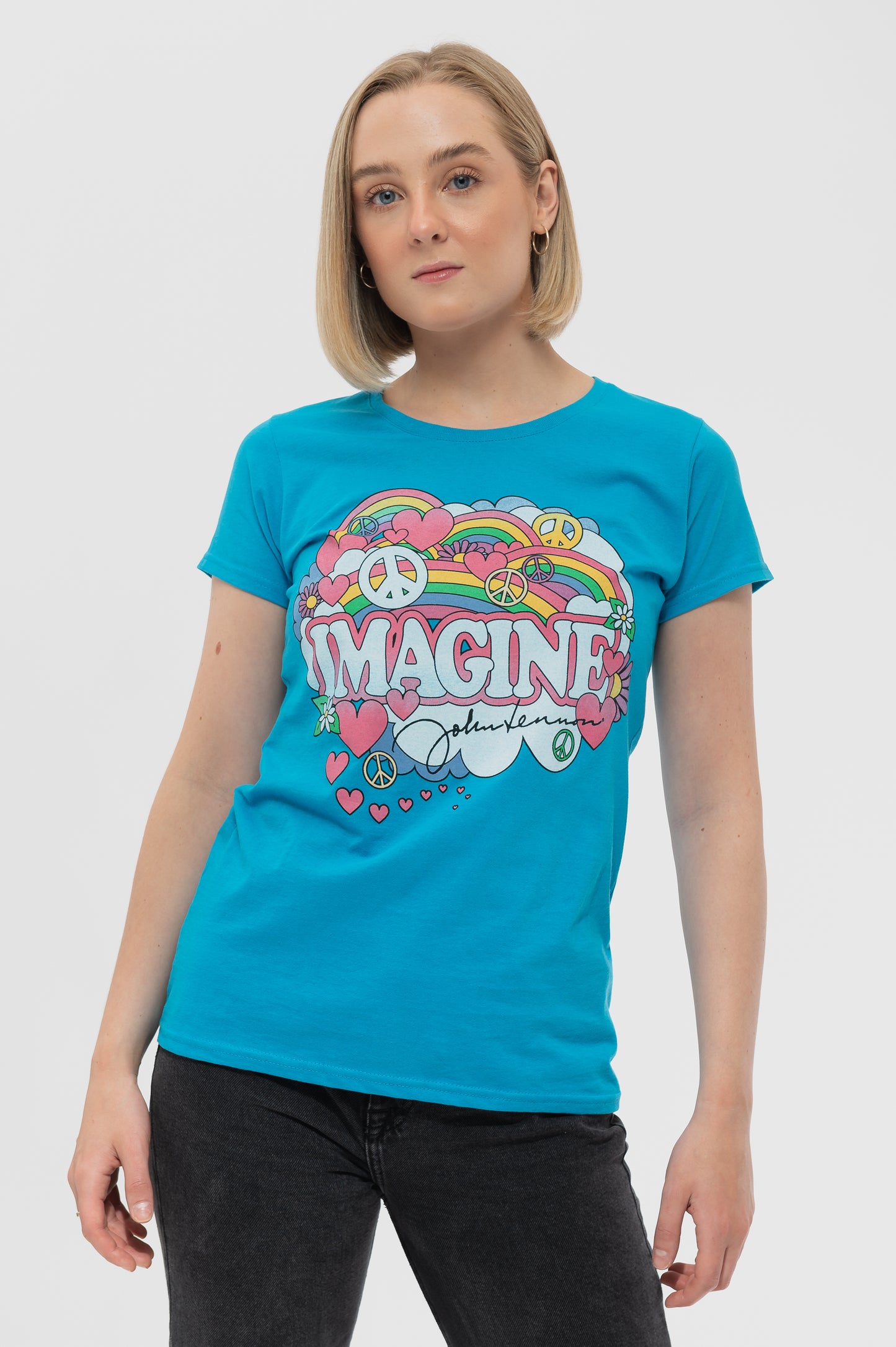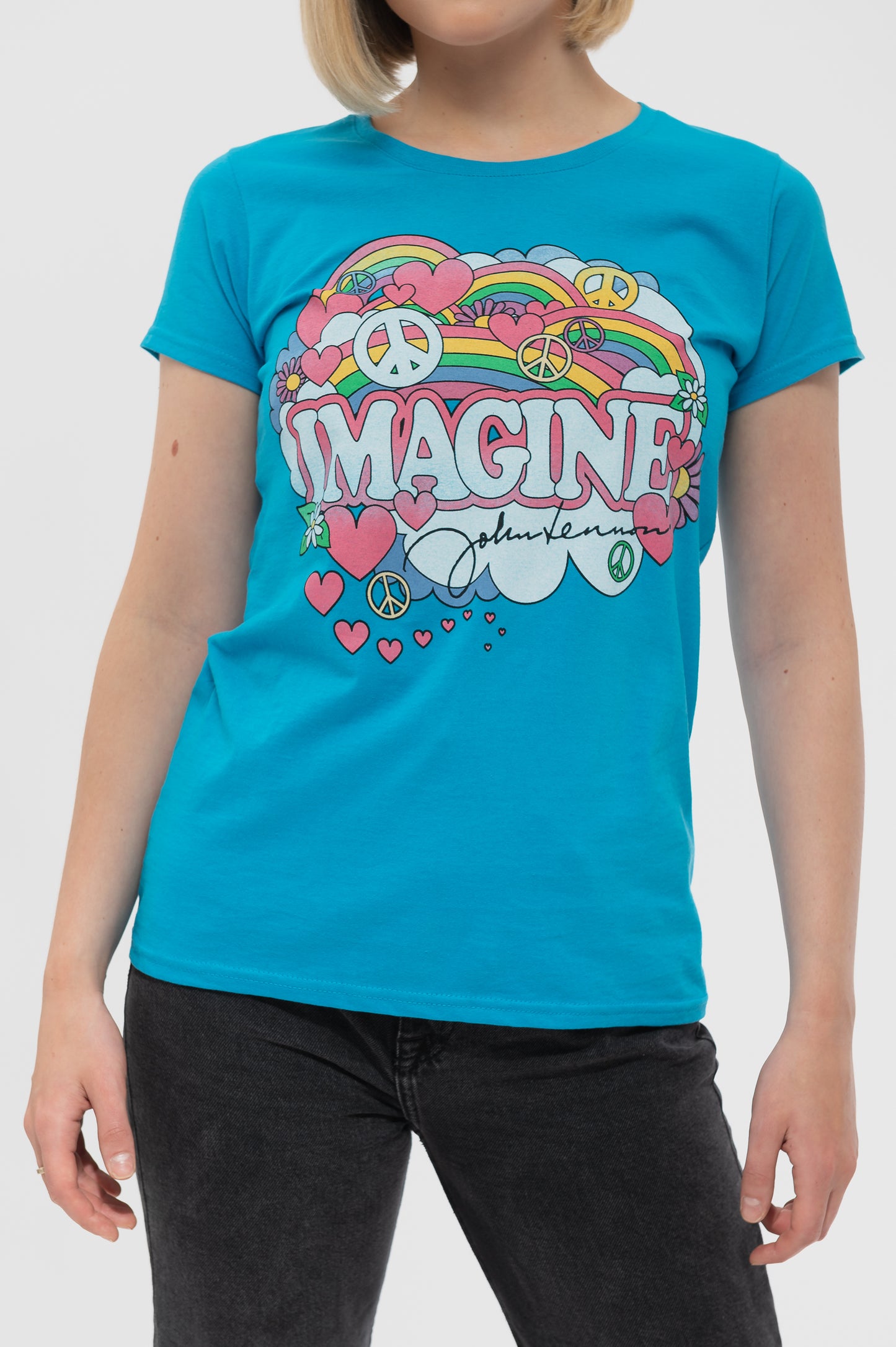 John Lennon Rainbows Love And Peace Skinny T Shirt