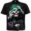 - Official Licensed Product from Warner Bros. DC Comics. The Joker is portrayed pulling at his face and hair. The painted smile, trademark purple suit and green bow tie make this design instantly recognizable.