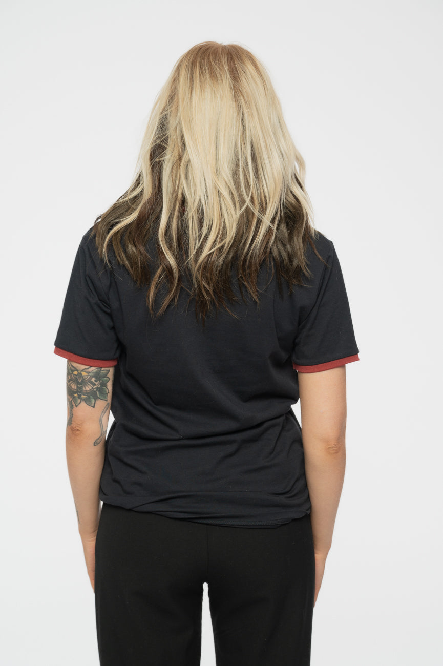 - High quality soft-style cotton unisex ringer t-shirt featuring contrasting sleeve and collar detail. With front printing