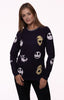 - High quality soft-style cotton unisex long sleeve t-shirt featuring sleeve, front & back printing, with contrasting crew neck collar. Embroidery to all characters.
